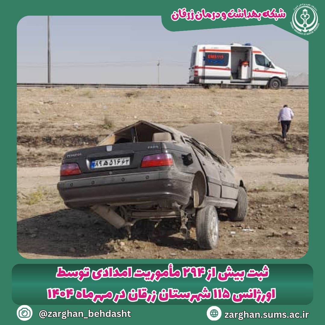 ثبت بیش از ۲۹۴ مأموریت امدادی توسط اورژانس ۱۱۵ زرقان در مهرماه ۱۴۰۴